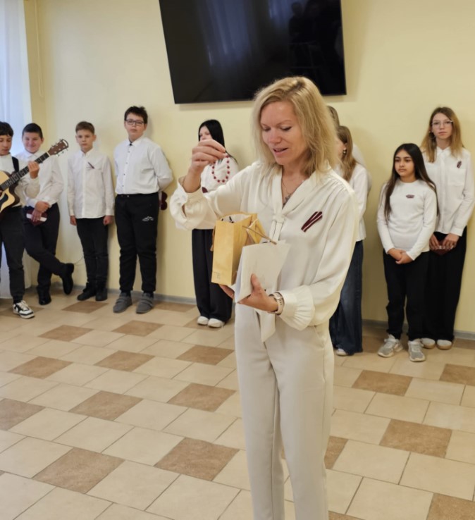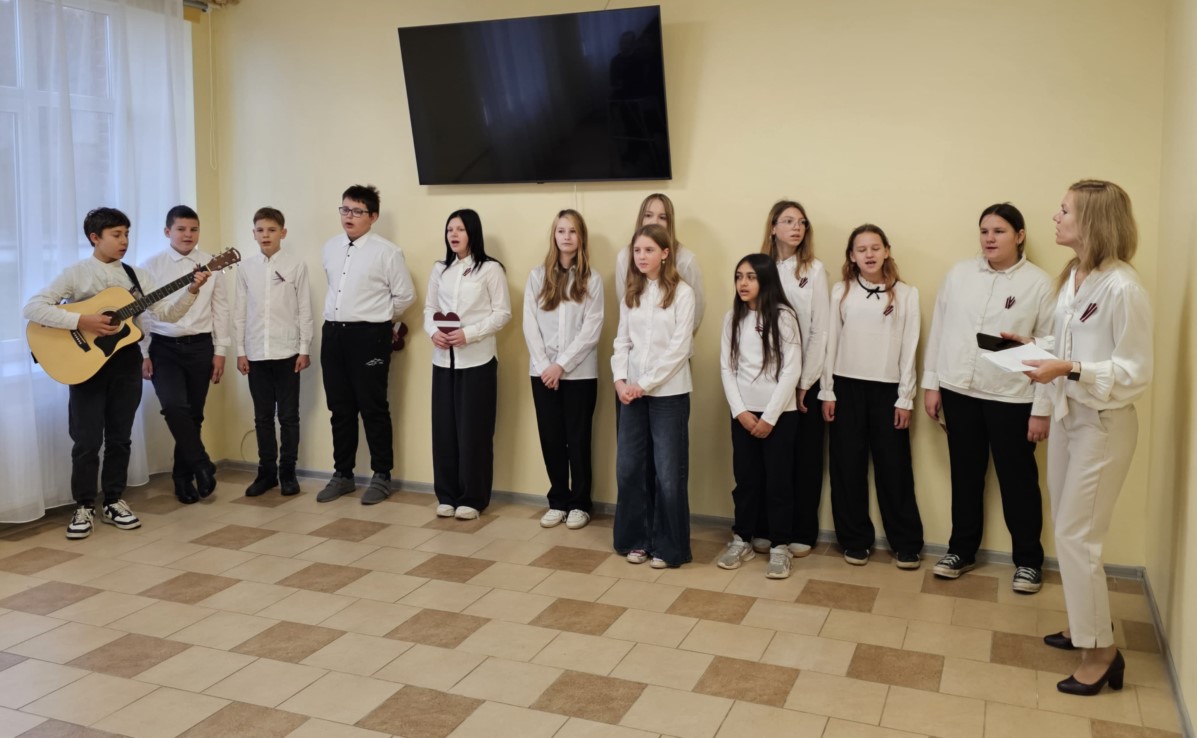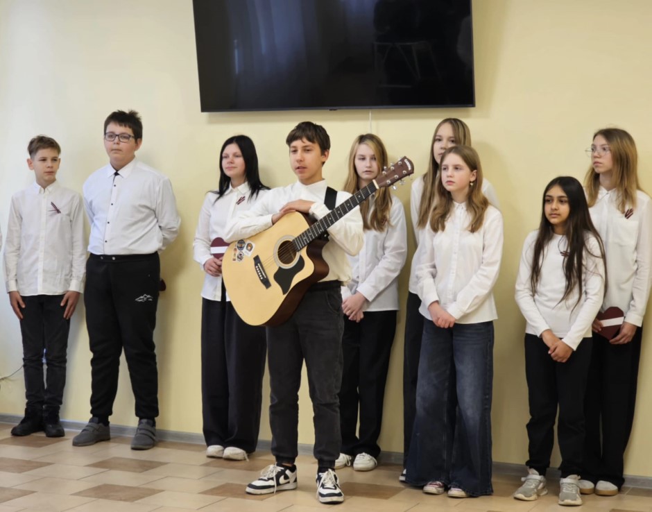 Valsts svētku noskaņās skolēni sniedza nelielu koncertu senioriem — tika dziedātas gan visiem zināmas latviešu tautasdziesmas, gan dziesmas par Latviju. Par īpaši sirsnīgu muzikālo pavadījumu parūpējās klasesbiedrs Georgijs Jakovļevs, kura ģitārspēle aizkustināja klausītājus un padarīja priekšnesumu vēl īpašāku.